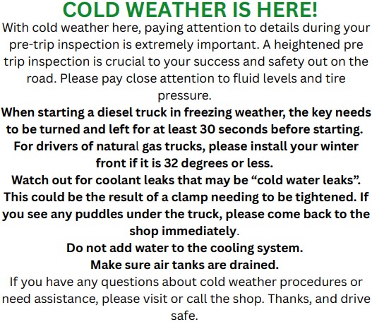 We do anticipate having light work the week of 12/26 for some customers. If you have questions regarding schedules or available work please contact your direct supervisor, scheduler, or driver manager.
